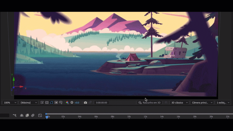 O After Effects permite exibir as camadas no espaço 3D assim que você começar a navegar. Quando estiver pronto para uma tomada, adicione uma câmera à sua cena selecionando Exibir > Criar câmera de exibição 3D. Isso cria uma câmera na linha do tempo com base na sua perspectiva atual. Você pode adicionar várias câmeras à sua cena com base em vários pontos de vista.