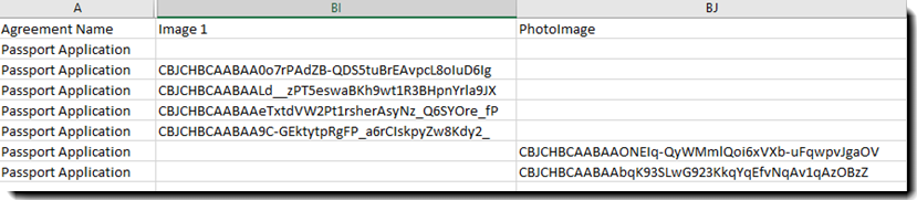 • Localize o cabeçalho que indica o campo de Imagem. O nome do campo é usado no cabeçalho do CSV.