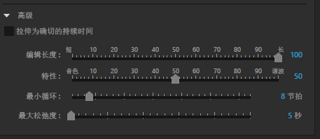 拉伸为确切的持续时间:此选项可对重新混合的剪辑进行时间拉伸和调整,这样剪辑可以更精确地匹配目标持续时间。