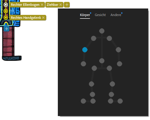 - Körper: Steuern Sie die Arme, den Oberkörper und die Beine Ihrer Marionette mit Ihrer Webcam.