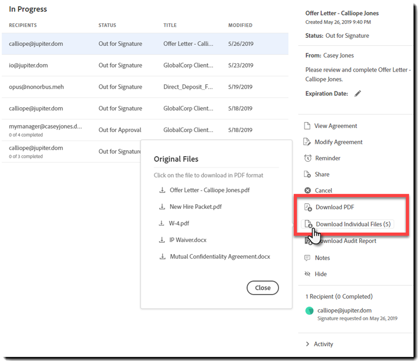 - Tilføj alternativ modtager – tilføjelse af en alternativ modtager inkluderer den nye modtager, hvilket efterlader den originale modtager på plads og i stand til at fuldføre aftalen