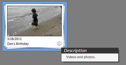 Double click on an event stack to view the media items present in the event stack. Click Add Media in the task panel to add more media items to a particular event stack.