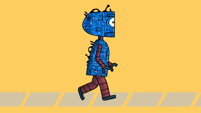 Haga caminar a un personaje, moviendo las piernas y balanceando los brazos.