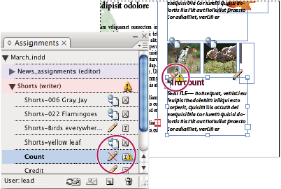 aparecerá junto a la asignación en el panel Asignaciones de InCopy.