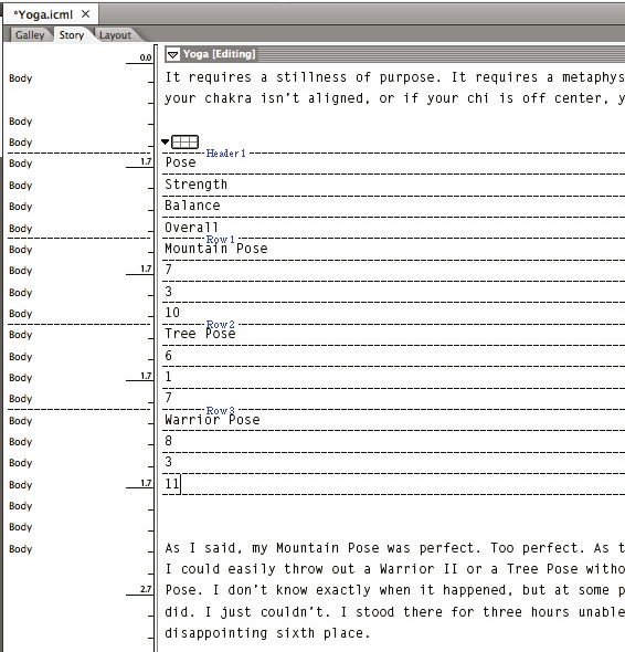 Al elegir Edición > Editar en Editor de artículos, las tablas y su contenido aparecen en el editor de artículos, donde se pueden editar.