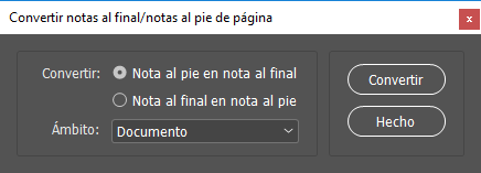 Documento: si desea convertir todas las notas al pie de página y las notas de final de sección en el documento.
