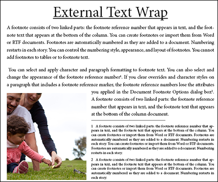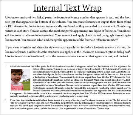 Alla olevassa esimerkissä valokuva ei kuulu alaviitteeseen, mutta teksti säädetään saumattomasti objektin ympärille.