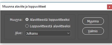 • Valinta: jos haluat muuntaa valinnastasi vain alaviitteet tai loppuviitteet.