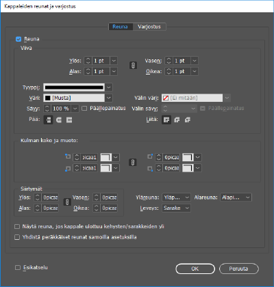 Valitse Reuna-valintaikkunasta jokin seuraavista vaihtoehdoista: