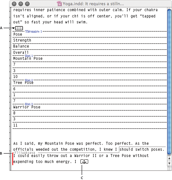Kun valitset Muokkaa > Muokkaa juttueditorissa, taulukot ja niiden sisältö näkyvät juttueditorissa. Voit muokata taulukoita myös juttueditorissa.