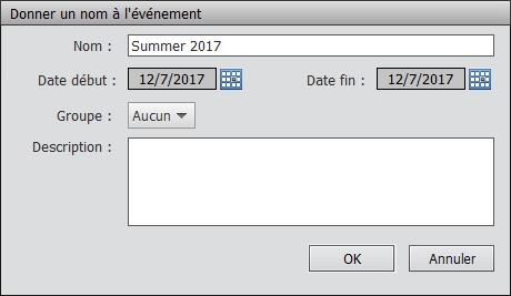 2. Dans la boîte de dialogue Donner un nom à l’événement qui s’affiche, saisissez un nom pour l’événement, puis cliquez sur OK.