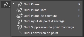 Lorsque vous utilisez l’outil Plume, les options suivantes sont disponibles dans la barre d’options :