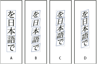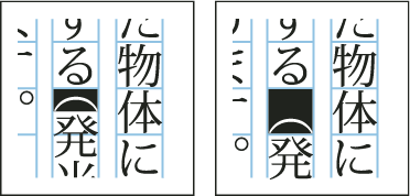 You can move text left, right, up, and down when you turn on the Tate-chu-yoko option. You can also set Auto Tate-chu-yoko for special half-width characters. Auto Tate-chu-yoko is set in the paragraph attributes.