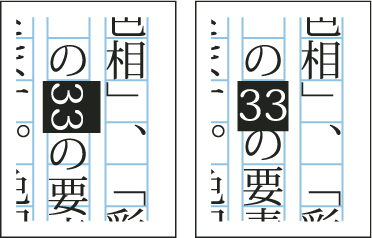 • In KumiNumber, specify the number of successive half-width characters that you want to rotate to vertical orientation. For example, if this is set to 2, the character string "123" will not rotate, while "12" will.
