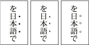 Small black circle kenten, black sesame kenten, and small white circle kenten applied to text