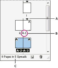 Nel pannello Pagine potete visualizzare la numerazione assoluta (tutte le pagine del documento con numeri consecutivi ad iniziare dalla prima) o per sezione (pagine etichettate per sezione, come specificato nella finestra di dialogo Opzioni sezione).