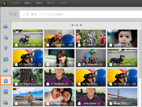 検索機能が強化され、こうしたパラメーターすべてを対象とする検索を 1 つの画面でおこなうことができます。探していた画像が見つかったら、Elements Organizer で簡単に編集したり共有したりできます。