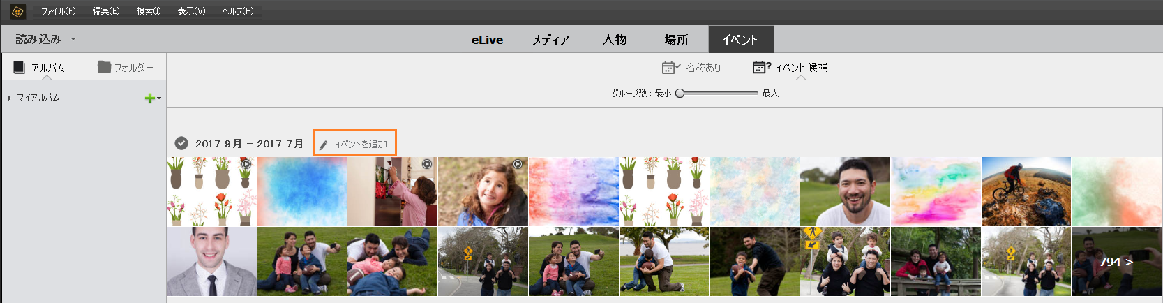 イベント別に整理されたメディアファイルを表示する