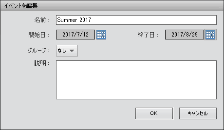 表示されたイベントに命名ダイアログボックスで、イベントの名前を指定し、「OK」をクリックします。