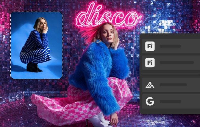 単調な背景や雑然とした背景を、被写体に合わせて AI で生成されたシーンに置換します。