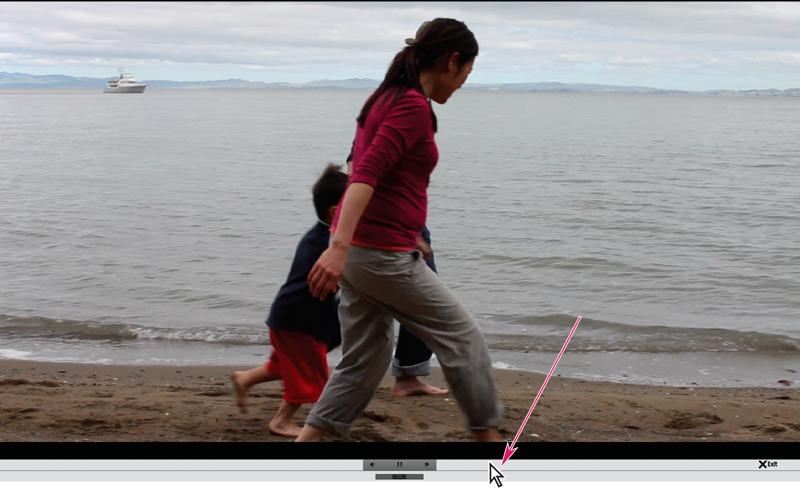 フルスクリーンプレビューでプレーヤーコントロールを表示するには、画面下部にカーソルを移動します。 -