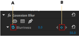 エフェクトコントロールパネルで、 アイコンを使用してキーフレームを追加するエフェクトを展開し、アニメーションのオン/オフ アイコンを選択して、エフェクトプロパティのキーフレームをアクティブ化します。