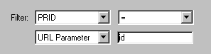 이러한 종류의 필터는 결과 페이지에서 지정한 레코드만 포함하는 레코드세트를 만듭니다. 예를 들어 PRID라는 키 열에 레코드 ID 정보가 포함된 경우 결과 페이지에서 해당 레코드 ID 정보를 id라는 URL 매개 변수로 전달하면 [필터] 영역은 다음과 같이 표시됩니다.