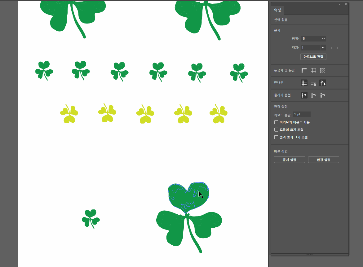 편집 옵션을 설정하지 않으면 기본적으로 아트보드 전체의 모든 유사 오브젝트가 편집을 위해 선택됩니다.