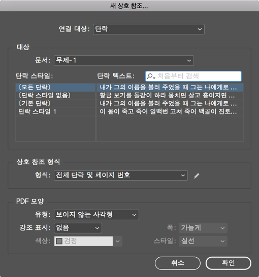 상호 참조 섹션에 문자 스타일 적용