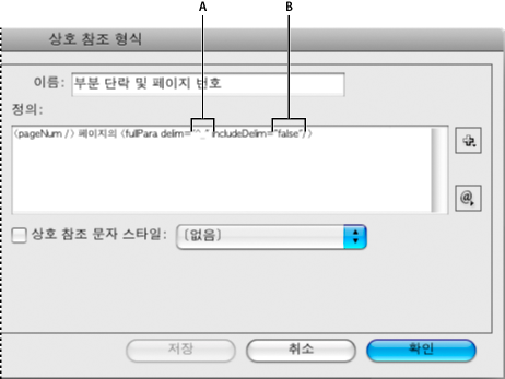 자세한 내용은 상호 참조에 문자 스타일 적용을 참조하십시오.