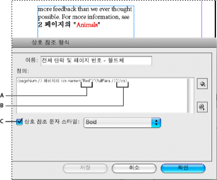 <cs name=”bold”><fullPara/></cs> <pageNum> 페이지 참조