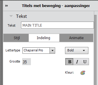 Dubbelklik op de bewegingtitel op de tijdlijn om de tekst te bewerken. U kunt uw tekst op de volgende manieren opmaken, een stijl geven en van animaties voorzien: