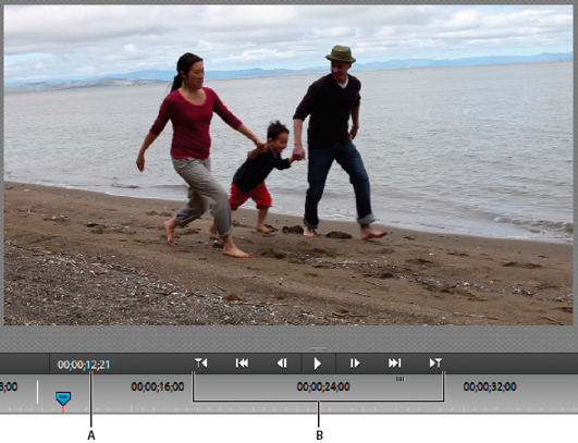 Als u naar een ander frame wilt gaan, klikt u op de huidige-tijdweergave en typt u de nieuwe tijd. (Dubbele punten of puntkomma's zijn niet vereist. Houd er echter rekening mee dat in Adobe Premiere Elements getallen onder de 100 als frames worden geïnterpreteerd.)