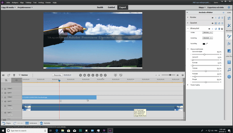 Obs!Se till att bakgrundsvideon är anpassad till bilden på video 2-spåret.