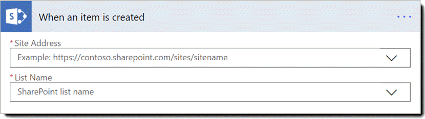 När mallen skapas måste du ange webbplatsadressen och listnamnet som utlösaren reagerar på.