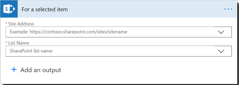 Värdet fylls i automatiskt med utdata från utlösaren För ett markerat objekt i SharePoint