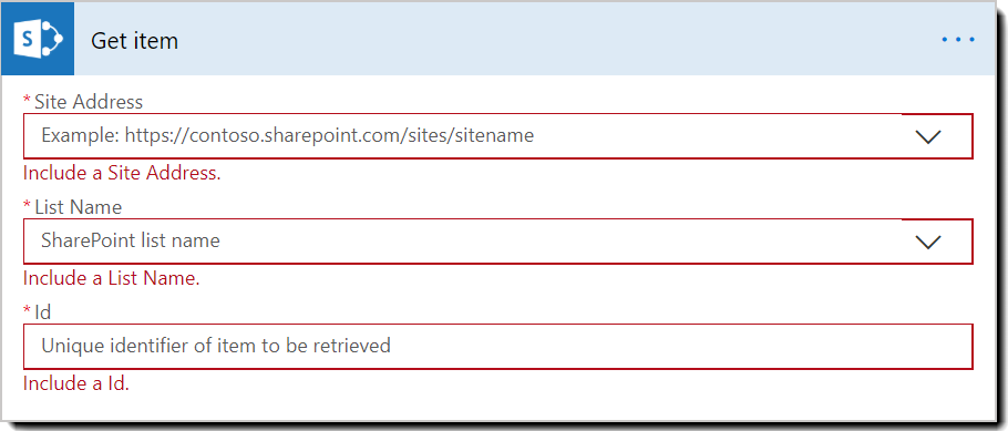 Fylls i automatiskt med utdata från åtgärden Hämta objekt i SharePoint.