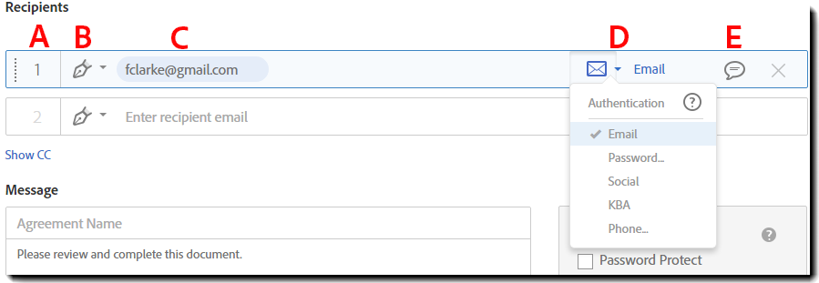 D. Authentication Methods – How should the recipient be vetted? Do you want to use additional authentication?