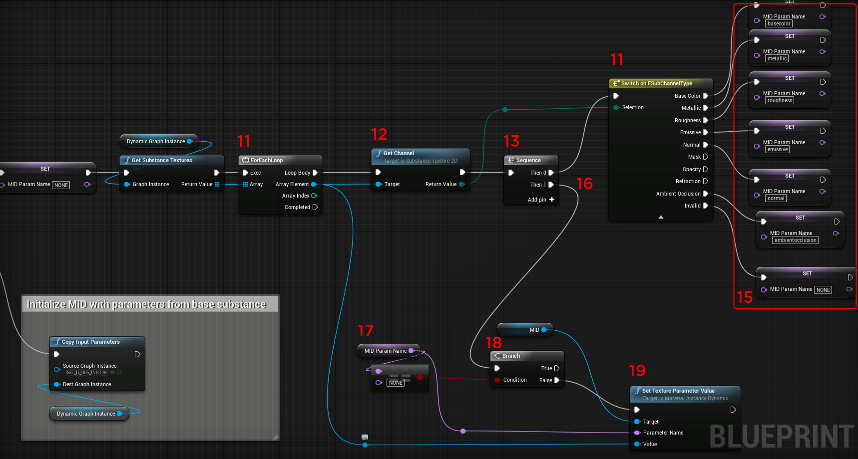 Set the MID Name variable to the channel names in the duplicated Substance Material from step 5. See the material image.