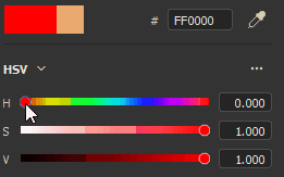 The sliders can be set two different modes, HSV or RGB. To change the mode, use the dedicated dropdown menu.